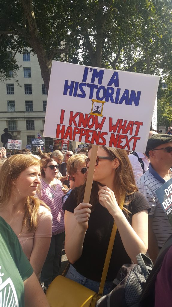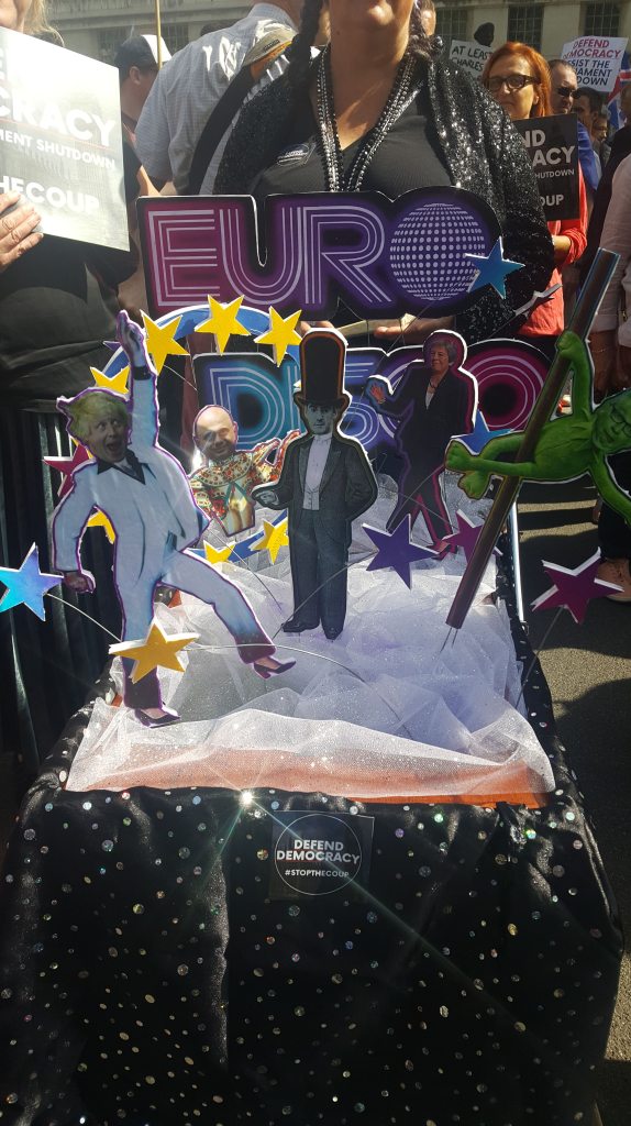 The current political difficulties facing the UK have also brought this to the forefront of my mind. When I was pondering what banner to make to attend the anti-prorogation protest in London last Saturday I decided I just wanted to take a love heart on a stick. That for me encapsulated why I was going and yet I did not have the confidence to make that banner, fearing ridicule. Didn’t I have anything sensible to say? Didn’t I want to take sides? To ridicule Johnson?