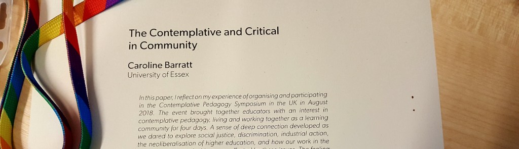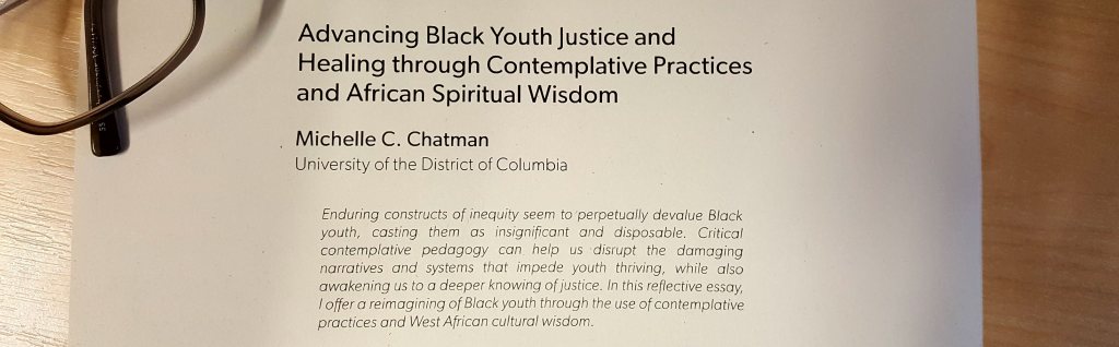 I was excited to realise that it wasn’t only me writing about critical contemplative pedagogy in the most recent issue of The Journal of Contemplative Inquiry. Michelle Chatman, who so generously contributed to the 2018 Contemplative Pedagogy Symposium and on whose singing I reflected in my own article, had also contributed a paper on this topic.